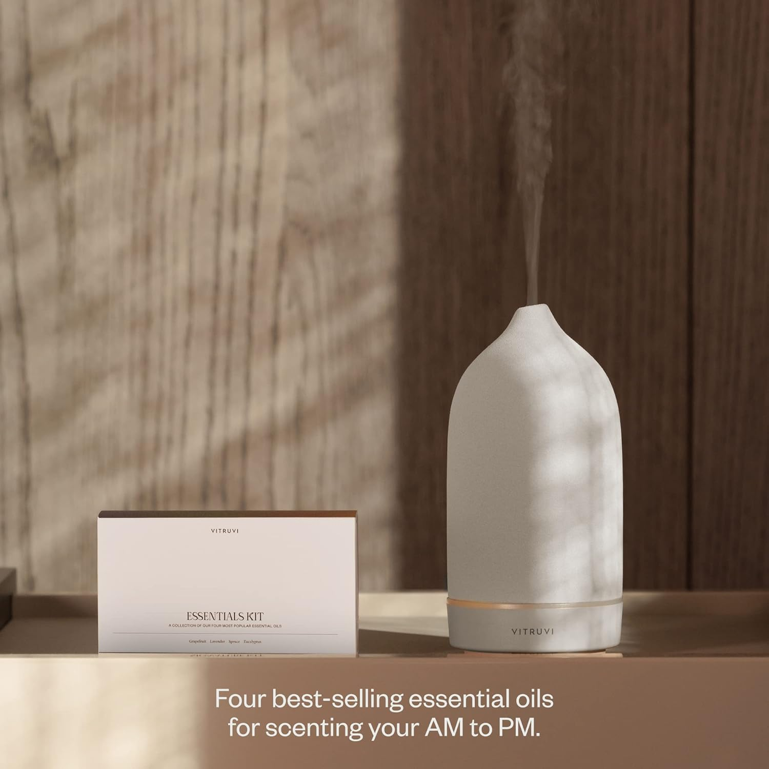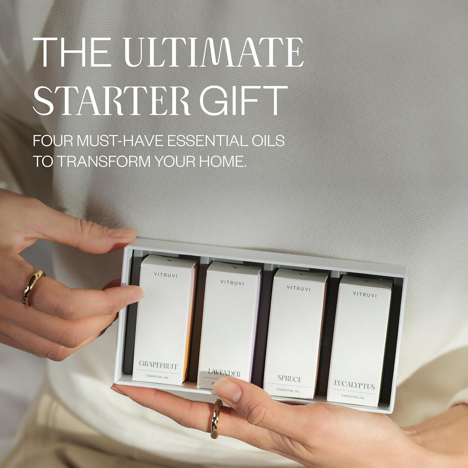 The kit includes energizing Grapefruit, calming Lavender, refreshing Spruce, and invigorating Eucalyptus. They blend well together, while also diffusing perfectly on their own—making this a great choice for curious newcomers and longtime oil-lovers alike. Essential oils blends are 100% pure, Vegan, Cruelty-free They are also free from synthetic fragrance, sulfates, parabens, formaldehydes, phthalates and mineral oil.