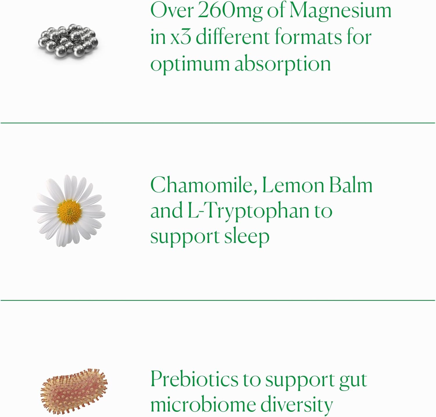 Your pre-bed sleep ritual, formulated to set you up for a restful night’s sleep. Delivering over 260mg of essential Magnesium in bio-available formats for optimum absorption. Added prebiotic formula to aid in digestion while you sleep.