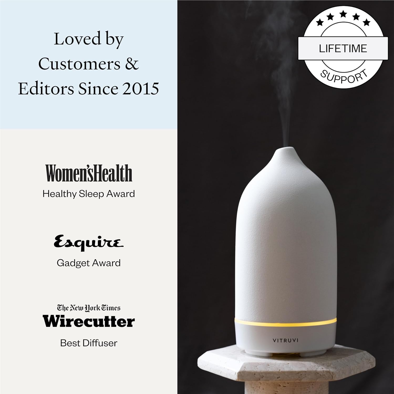 Stone essential oil diffuser’s high-quality matte ceramic cover looks like a piece of pottery in your home. This essential oil diffuser will effortlessly match your unique decor preferences. This ceramic essential oil diffuser comes equipped with 4-hour and 8-hour run times. The ultrasonic Stone Diffuser has an automatic safety shut-off feature built into the device, turning the diffuser off when water runs out. There is also an optional LED light that gives off a soft glow for added ambience.